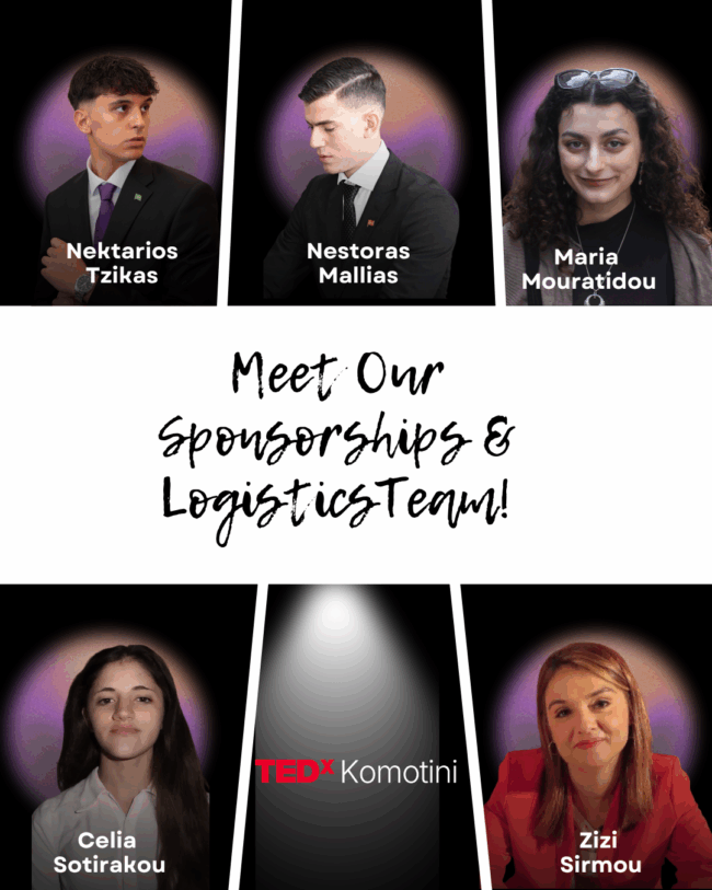 TEDxKomotini sponsors include: Snappi, Prognosi, Motorola, Aegean Airlines, Anatolia Hotels, Logitech, Wolt, Cerave, European Youth Card, Eventora, Stabilo, Starbucks, dew, Lay’s, Pepsi, ZANAE, Tuvunu, El Greco, Tefaco, Freshline and Zcal.