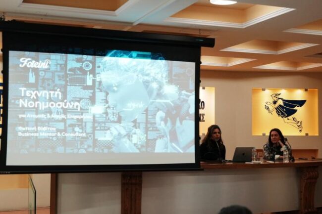 Στόχος της δράσης ήταν να προσφέρει στους επαγγελματίες της περιοχής πρακτική γνώση και χρήσιμα εργαλεία για την αξιοποίηση της Τεχνητής Νοημοσύνης στην καθημερινή λειτουργία των επιχειρήσεών τους. Κεντρική ομιλήτρια ήταν η κα. Φωτεινή Βαβίτσα, Οικονομολόγος MSc, Business Coach & Mentor, η οποία παρουσίασε με απλό και κατανοητό τρόπο τις δυνατότητες της ΑΙ, δίνοντας έμφαση στη σύγχρονη επιχειρηματική εφαρμογή της.