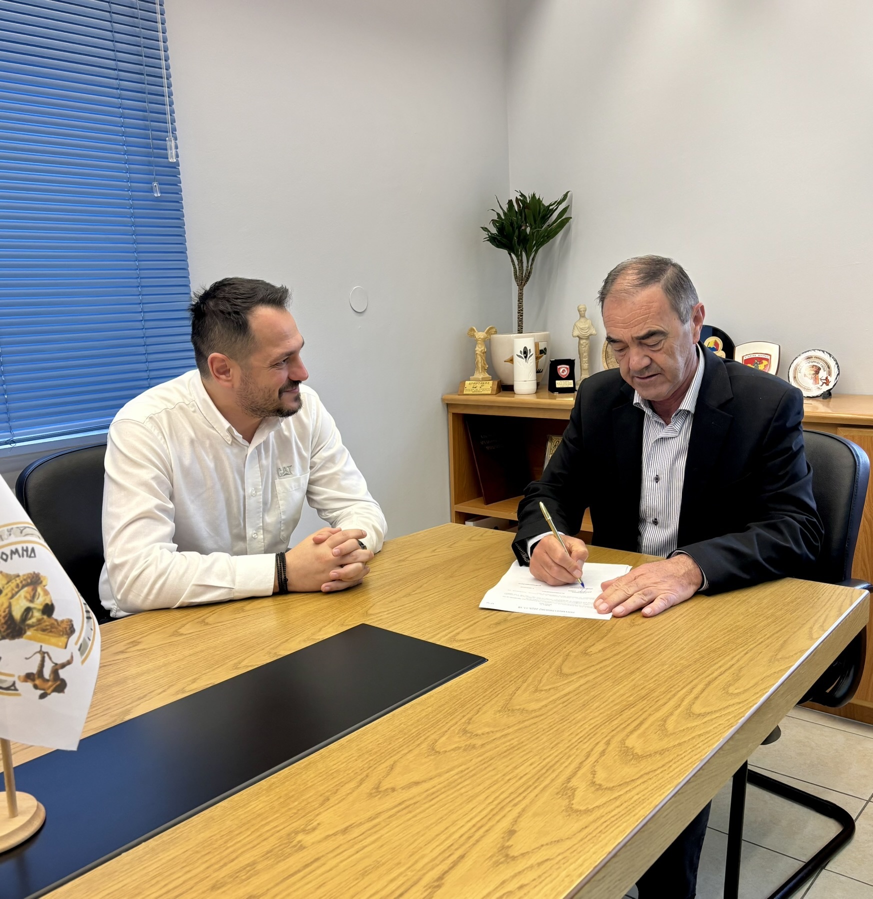 Υπεγράφη σύμβαση μεταξύ του Δημάρχου Μαρωνείας -Σαπών και εκπροσώπου της αναδόχου εταιρίας για την προμήθεια ενός ισοπεδωτή γαιών (grader).