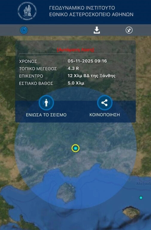 Σεισμός 4,5 Ρίχτερ τώρα στην Ξάνθη – Εκκενώθηκαν σχολικές τάξεις