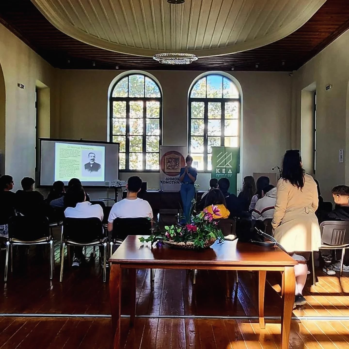 Όπως σημειώνουν οι εργαζόμενοι τςη Δημοτικής Βιβλιοθήκης Κομοτηνής: “Με μεγάλη χαρά υποδεχτηκαμε τους μαθητες της Γ’ τάξης του 5ο Πειραματικού Γυμνασίου Κομοτηνής, με την υπευθυνη καθηγητρια την Όλγα Παλαιοχωρινού, πιστή στο ετήσιο ραντεβού στη Βιβλιοθήκη μας. Όλοι μαζί ξεκληδώσαμε τη θέση της Τσανακλείου Σχολής στον χρόνο και στον χώρο, ανακαλύψαμε πτυχές της ζωής και του έργου του Νέστορα Τσανακλή, περιηγήθηκαμε στο κτήριο, ξεφυλλίσαμε βιβλία, ανταλλάξαμε σκέψεις, μάθαμε για τις υπηρεσίες της Βιβλιοθήκης!
